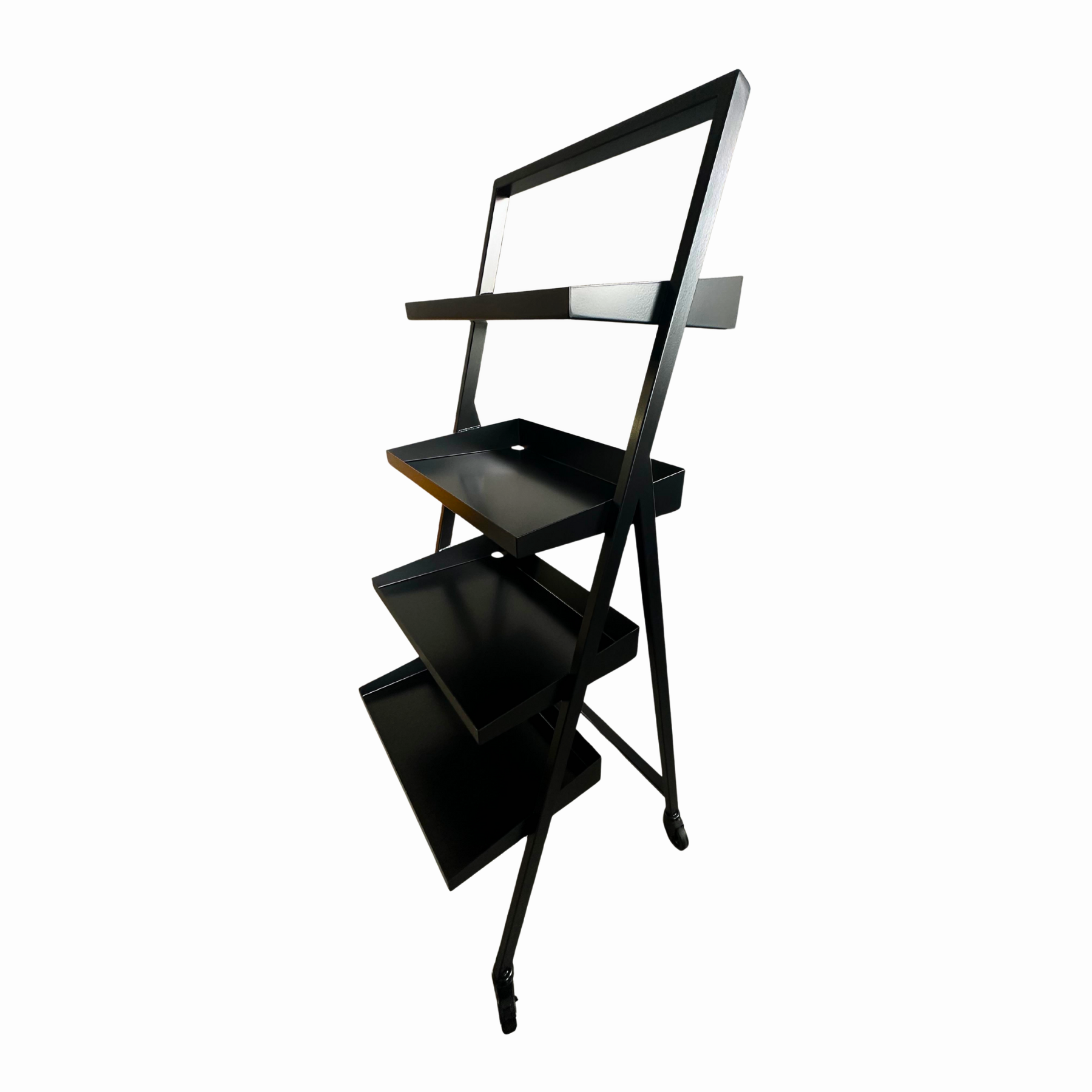 - Ausgestattet mit 4 schwarzen Lenkrollen, davon 2 mit Feststeller für einen sicheren Stand und maximale Flexibilität im Verkaufsraum